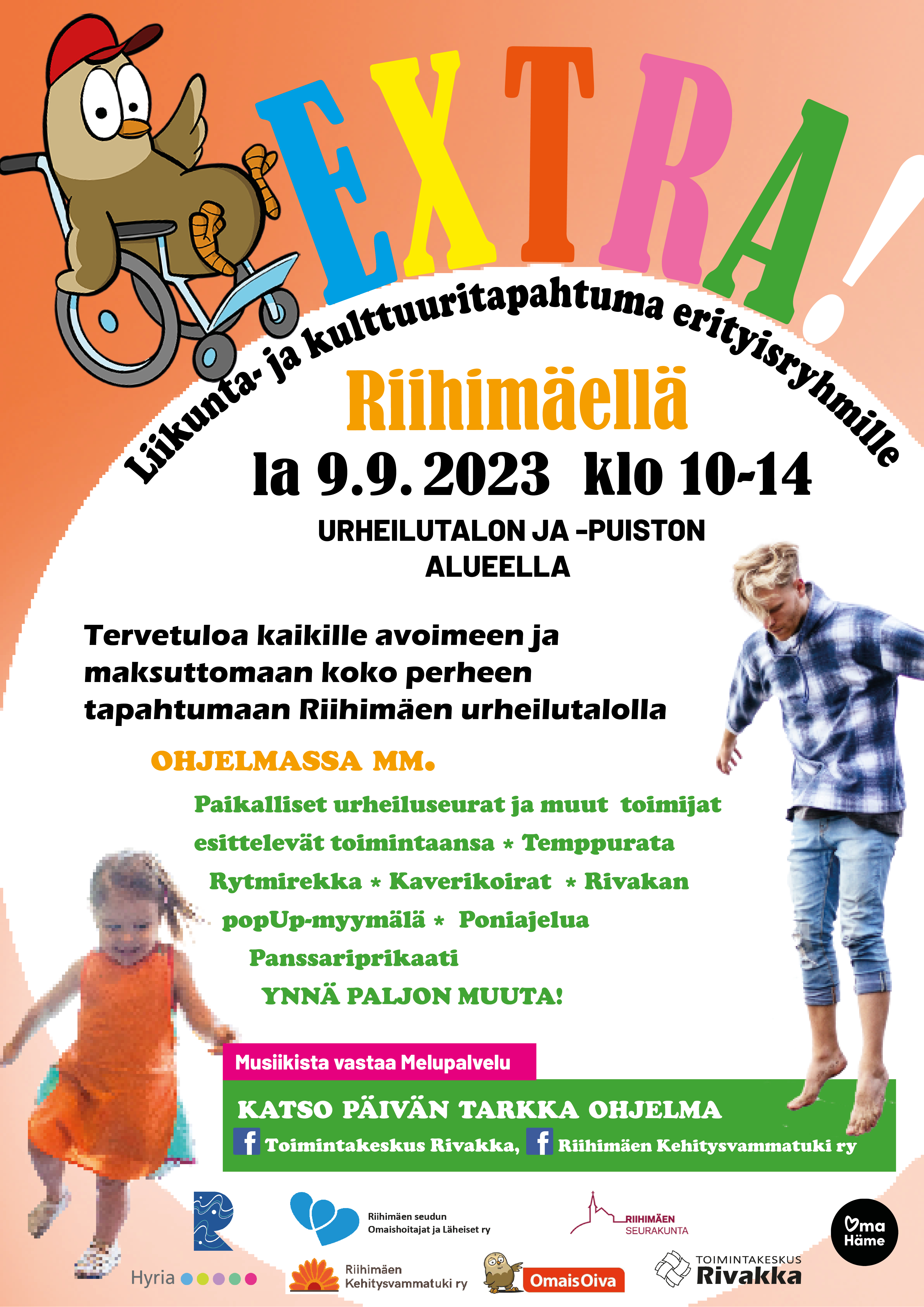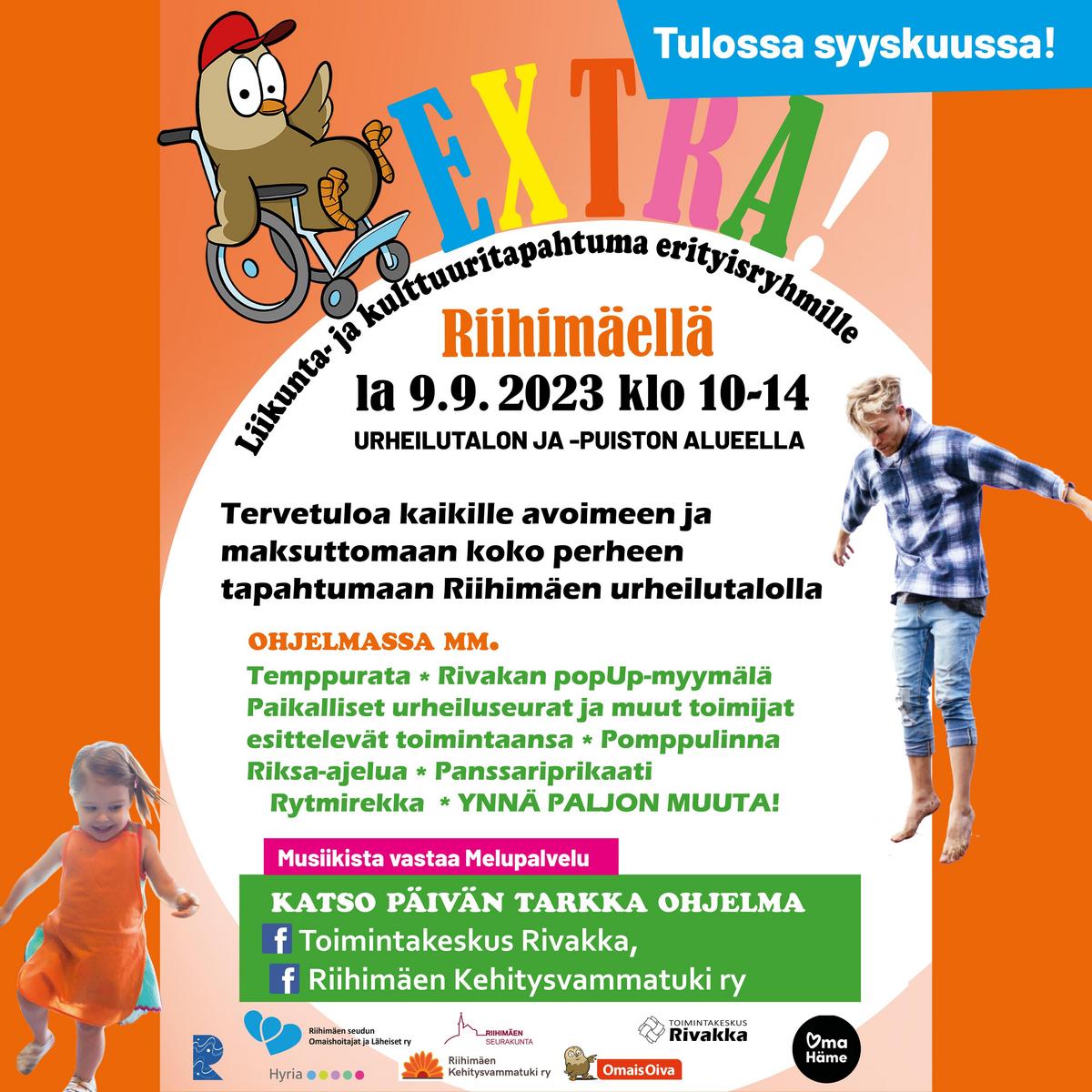 Tervetuloa erityislapsiperheille järjestettävään EXTRA-liikunnalliseen puuhapäivään, joka järjestetään lauantaina 9.9.2023 klo 10-14 Riihimäen Urheilutalolla.
